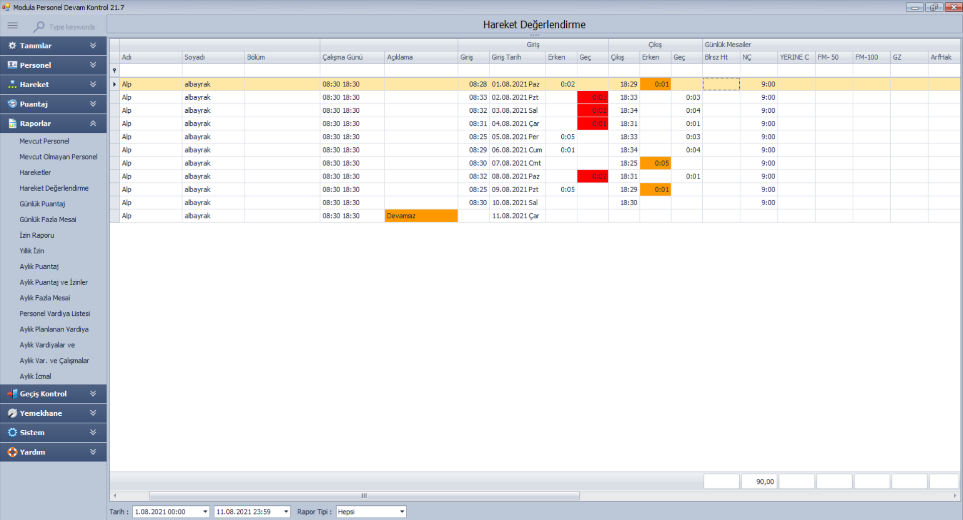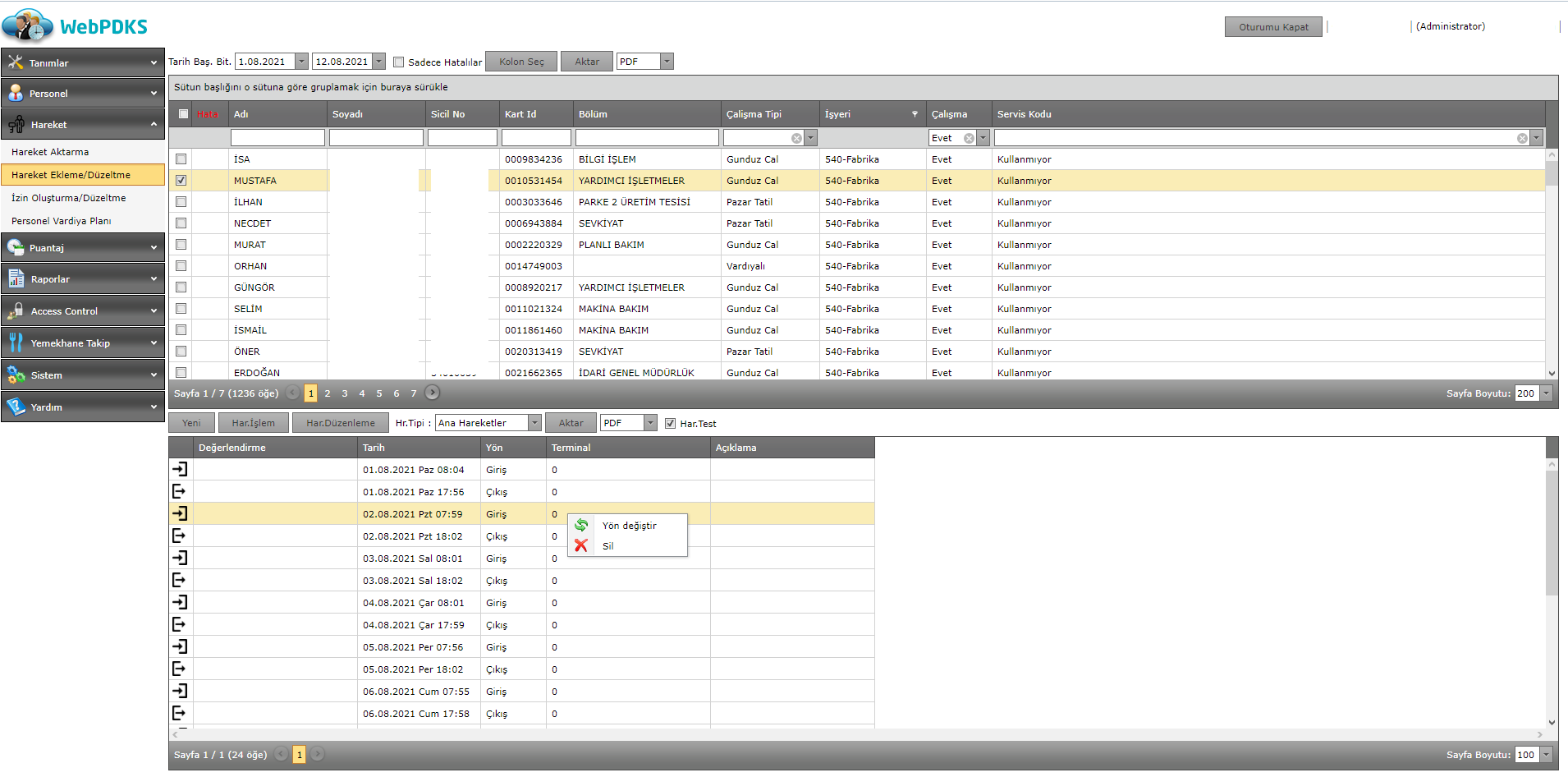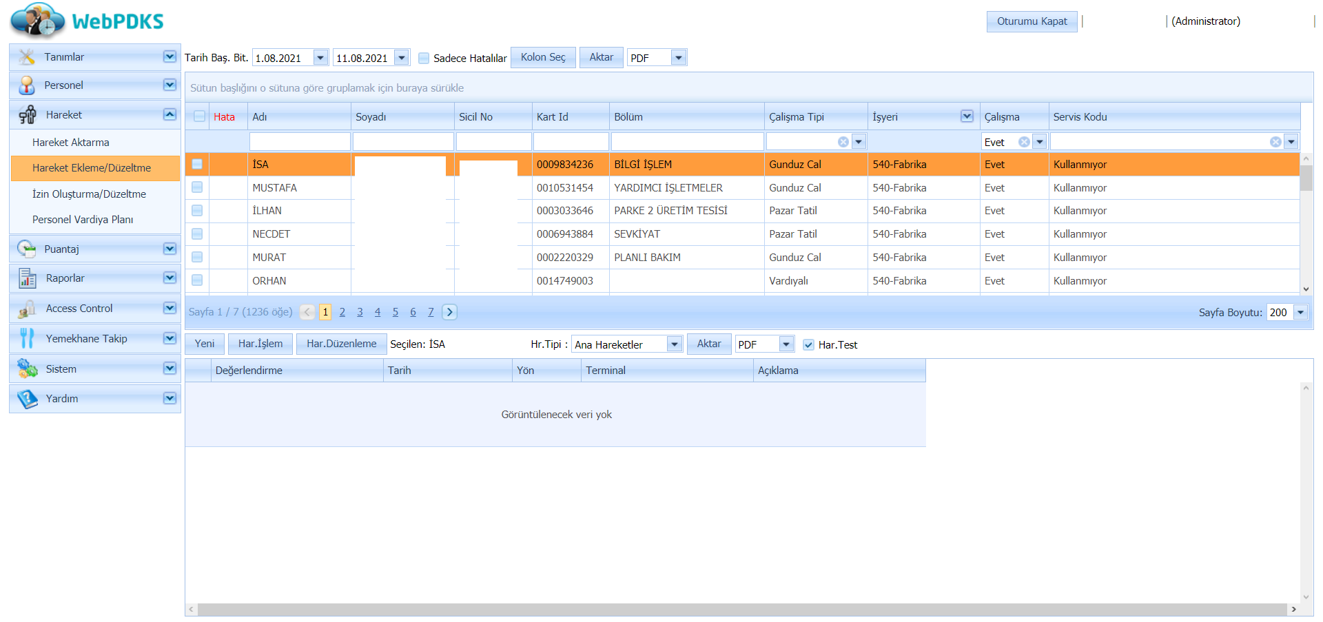 Personel hareketleri personel bazlı veya toplu bir şekilde kolayca düzenlenebilir.